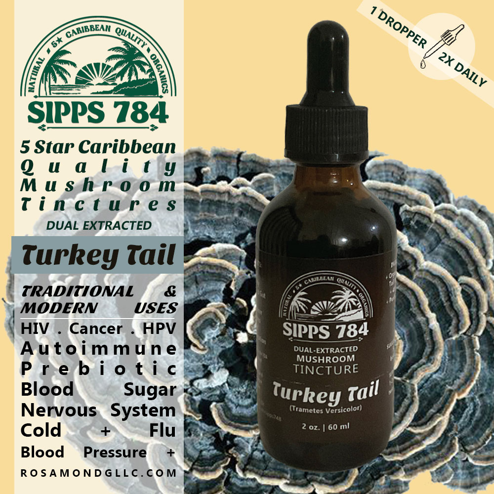 Turkey Tail Mushroom Tincture from SIPPS784. Caribbean 5 Star Quality Tinctures.